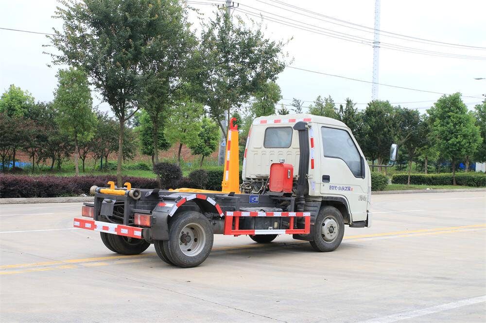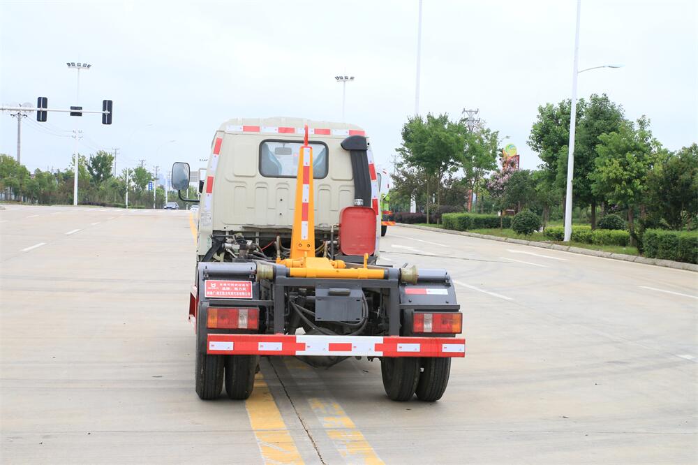 勾臂式垃圾車(車廂可卸式垃圾車)介紹: 車廂可卸式垃圾車又叫拉臂式垃圾車,是一種采用高新設(shè)計(jì)可伸縮的鉤臂,實(shí)現(xiàn)垃圾廂的二次吊裝,自吊上放下,可自行傾倒垃圾的環(huán)衛(wèi)設(shè)備。 拉臂式垃圾車結(jié)構(gòu)簡單,操作穩(wěn)定方便,裝卸效率高,機(jī)械化程度高,節(jié)省人力。鉤臂垃圾車一車可帶多個垃圾廂,在裝卸的運(yùn)輸過程中可有效地避免二次污染。 拉臂垃圾車采用高新設(shè)計(jì)可擺動的鉤臂,垃圾箱由框架、開啟油缸、滑輪、后門和若干加強(qiáng)框架與鋼板焊接而成。調(diào)換貨廂快捷方便,貨廂上帶蓋(倒垃圾時可翻開),鉤臂垃圾車?yán)鴰w可選用碳鋼、不銹鋼材質(zhì)、內(nèi)部采取環(huán)氧樹脂防腐處理,改裝部分與原車底盤為可分離式,維修方便且保持了原車的機(jī)動性及行駛性能。