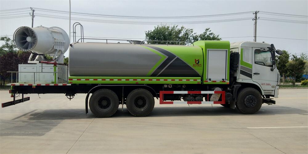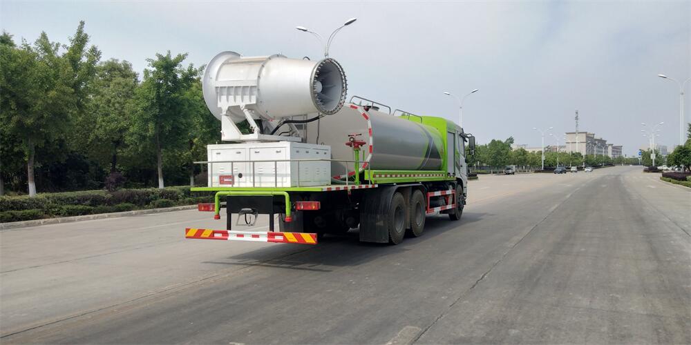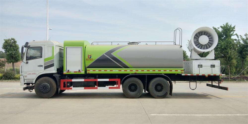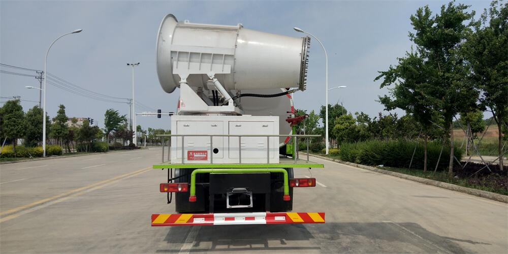 上裝配置:罐體容積為 16立方,選配風(fēng)送式霧炮機(jī)組射程30米、40米、50米、60米、80米、100米、120米霧炮,罐體鋼板為4mm碳鋼Q235材質(zhì),罐內(nèi)隔板具有防波作用,以減輕汽車(chē)行駛時(shí)罐體液體沖擊,罐體及整車(chē)外形尺寸按照公告。帶大功率專(zhuān)用灑水泵,泵可自吸自排,整車(chē)前沖、后灑、側(cè)噴、帶65消防接口,后平臺(tái)配CLW-50、CLW-60、CLW-80、CLW-100、CLW-120型風(fēng)送式霧炮機(jī)組;罐體前封頭配大功率柴油發(fā)電機(jī)組;前封頭帶水位計(jì),后平臺(tái)主管路帶1寸澆花接口,后爬梯。帶兩根輸水管及陰陽(yáng)端。罐體顏色:銀/灰/綠,罐體兩側(cè)噴“多功能抑塵車(chē)”字樣,貼反光標(biāo)示。