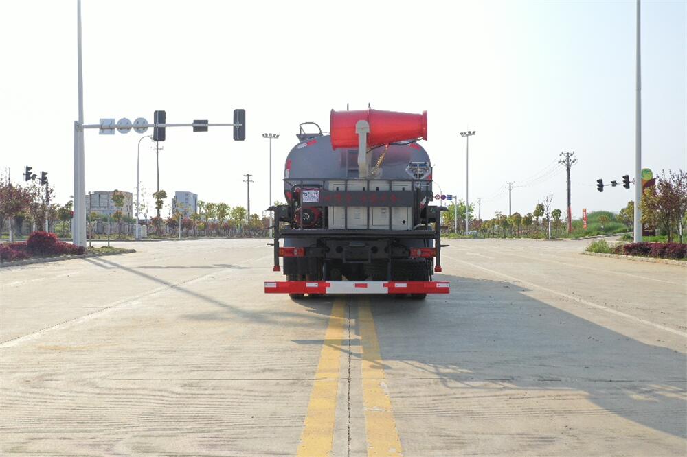 主要由發動機帶動變速箱,變速箱上安裝的取力器帶動灑水泵,灑水泵產生動力,將罐體內部的液體通過管網噴灑出去。工作范圍:自吸高度:≥7m,灑水寬度:≥14m,**大射程:≥28m;可調節成柱狀,射程≥28m;也可調節成霧狀,射程≥5m。