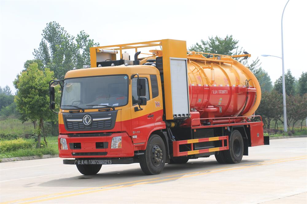 15方15方清洗吸污車-東風(fēng)天錦15方10+5清洗吸污兩用車-帶副發(fā)動機(jī)圓罐紅黃色
