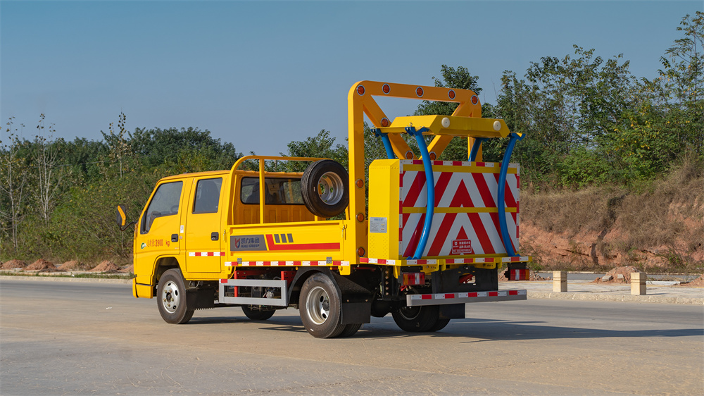 上裝配置:護箱:采用Q235國標邊3mm底板花紋板3mm厚,箱體后部防撞包采用國內知名公司,高性能液壓系統(tǒng),可實現(xiàn)快速舉升和落下操作,方便設備運輸轉場,一鍵啟動功能,配有10個定制**示燈,LED**示顯示屏。