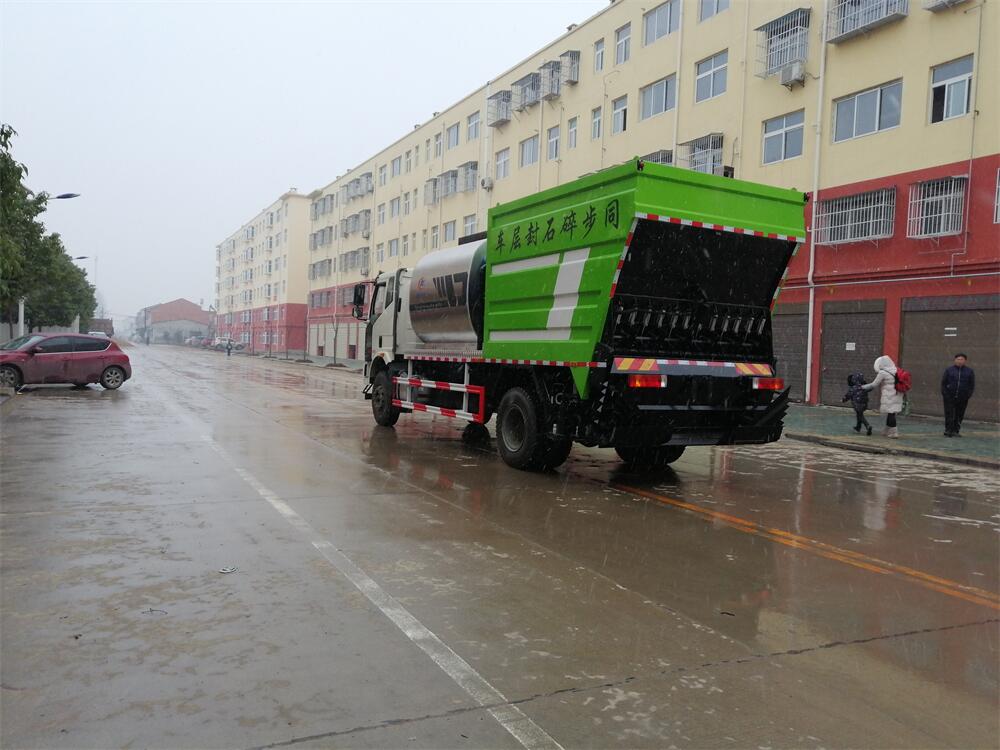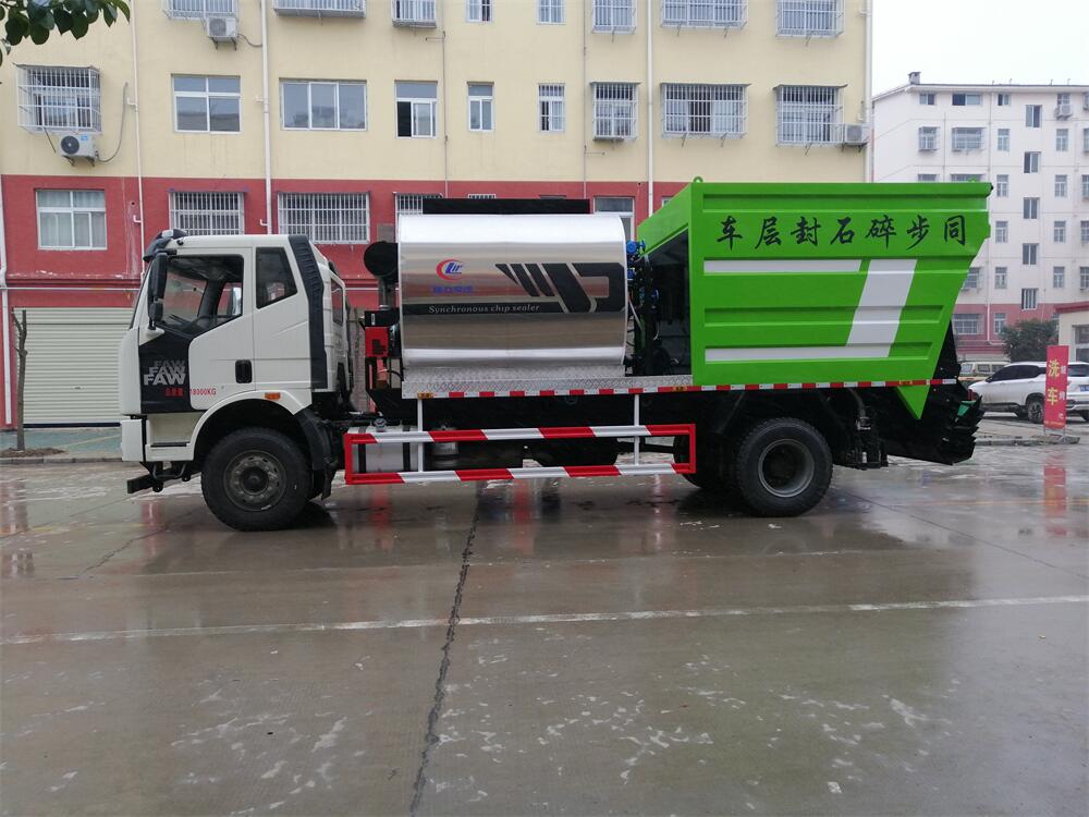 4、后雙橋同步碎石封層車完全采用電氣**,自動化程度高,,能**的計算出設備在施工過程中瀝青噴灑量和石屑撒布量的多少;