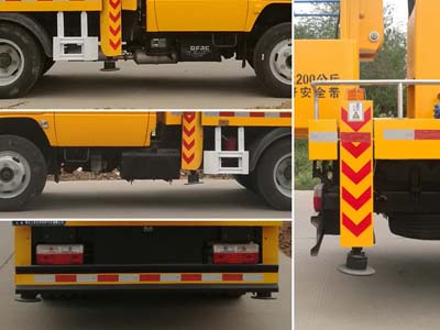 后伸:300mm;隨底盤選裝駕駛室;選裝吊鉤;側面防護及后下部防護裝置材料材質:Q235,連接方式:焊接加螺栓連接;后下部防護裝置斷面尺寸(寬贅?:30?00(mm),離地高度:350mm;ABS廠家及型號:襄陽東風隆誠機械有限責任公司/ABS/ASR-24V-4S/4M;主要專用裝置為折疊臂,用于搶修電力、通訊、路燈等高空作業(yè). |