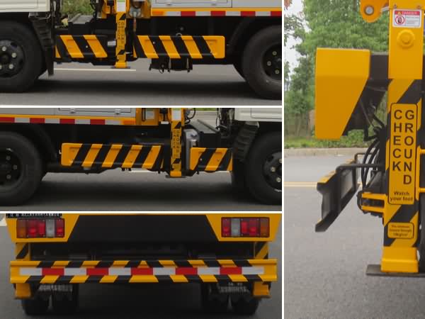 后伸:145mm,295mm,外形尺寸長與后伸對應關系(mm):5650/145,5800/295;隨底盤選裝駕駛室;側面防護及后下部防護裝置材料材質:Q235,連接方式:焊接加螺栓連接;后下部防護裝置斷面尺寸(寬贅?:25?50(mm),離地高度:430mm;ABS系統型號:APG3550500A,ABS系統生產廠家:浙江亞太機電股份有限公司;主要專用裝置為升縮臂,用于搶修電力、通訊、路燈等高空作業. |